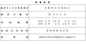 | ■許認可 | 警備業認定 京都府公安委員会認定293号 |